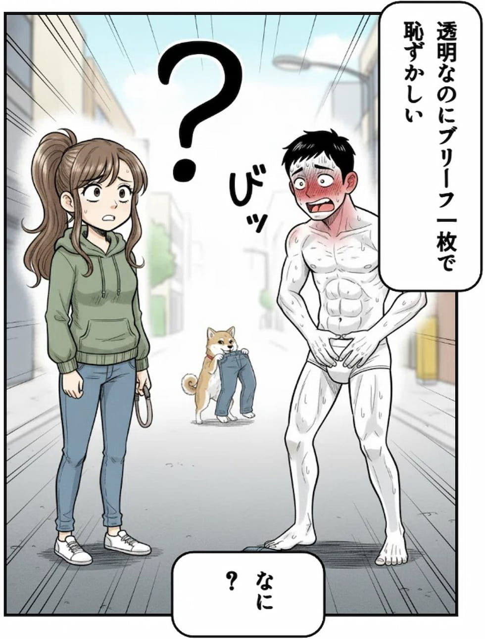 但我現在只穿著一件內褲。